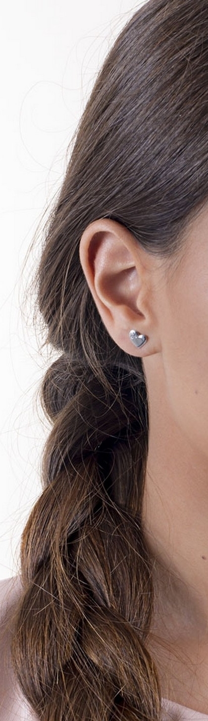 Orecchini a cuore in oro bianco 18k con tre Zirconi ognuno.