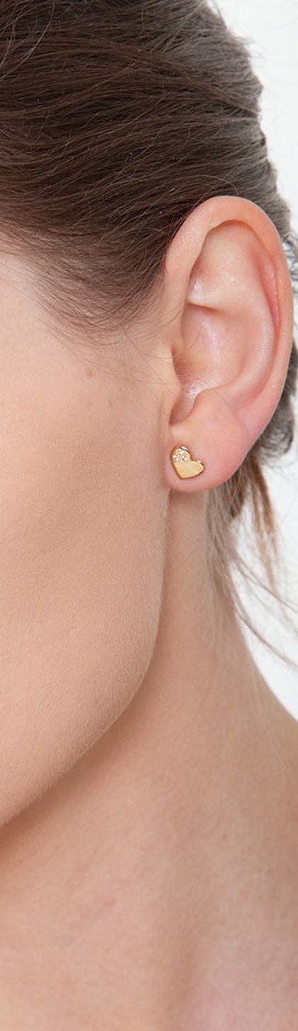 Orecchini a cuore in oro giallo 18k con Zirconi.