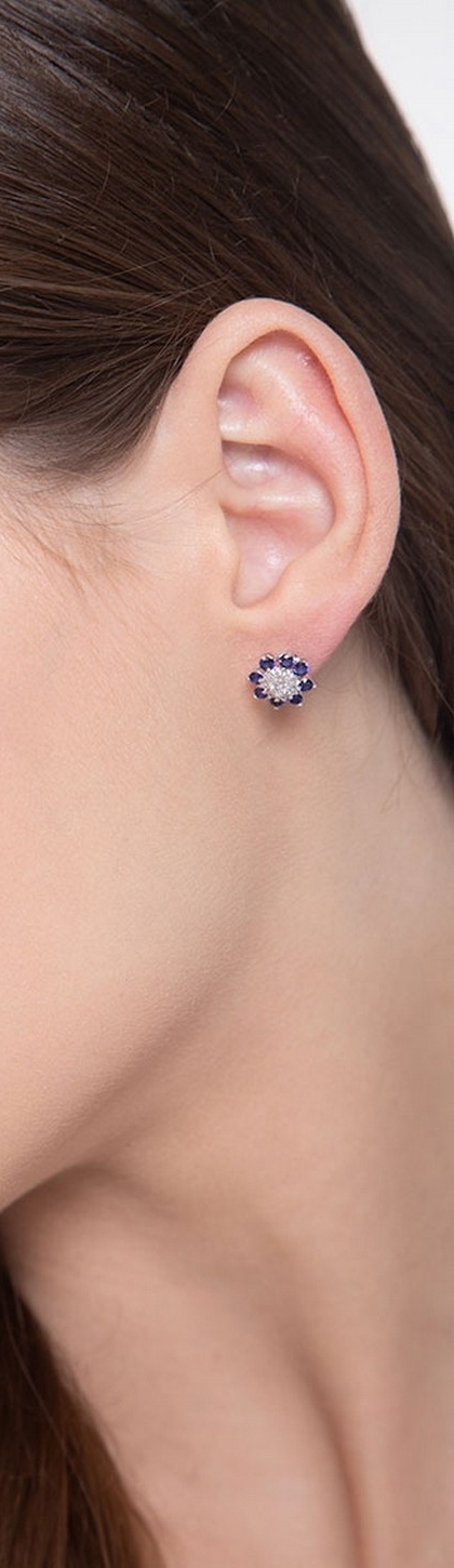 Orecchini a fiore in oro bianco 18k con zaffiri blu e diamanti