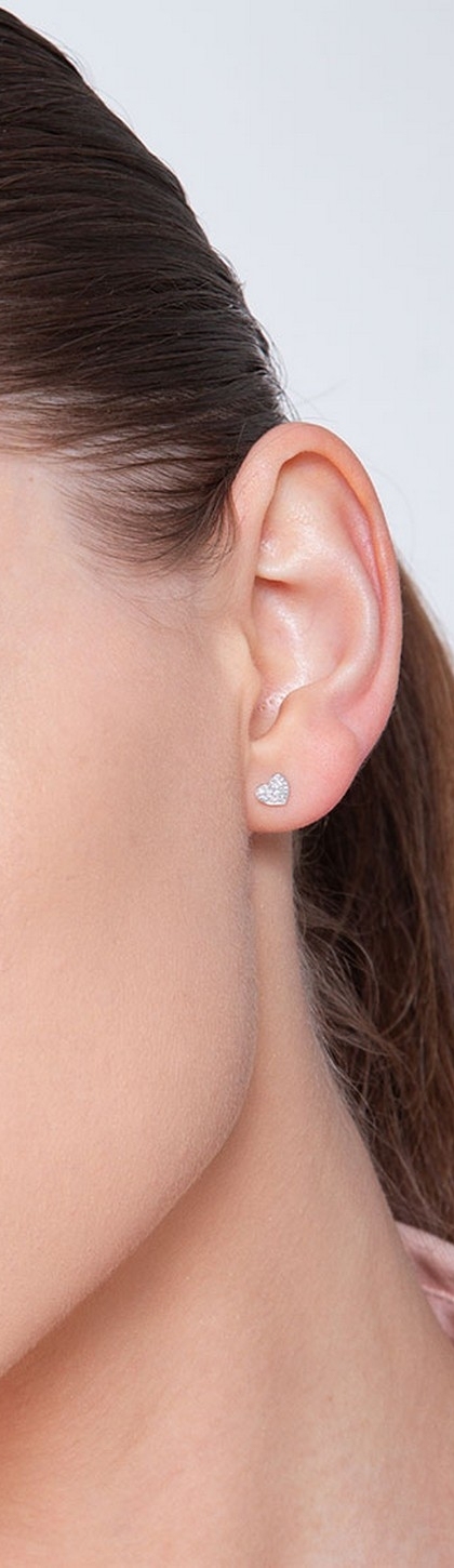 Orecchini a lobo con cuore in oro bianco 18k e diamanti