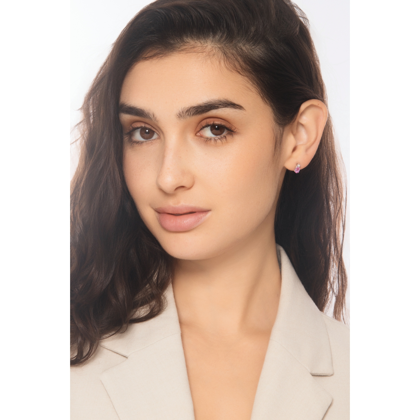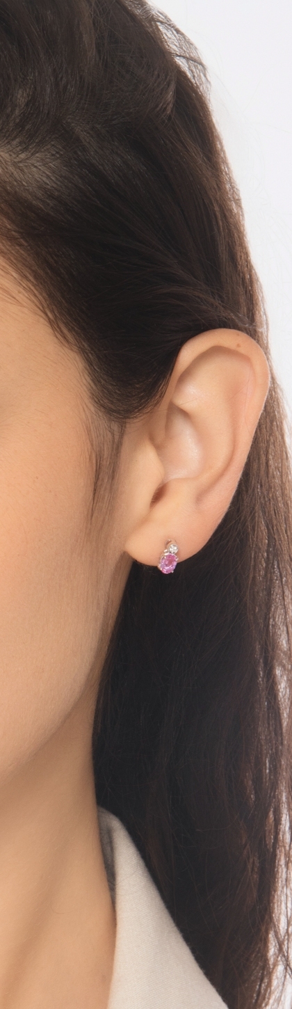 Orecchini a lobo in oro 18k con zaffiro rosa ovale e diamante