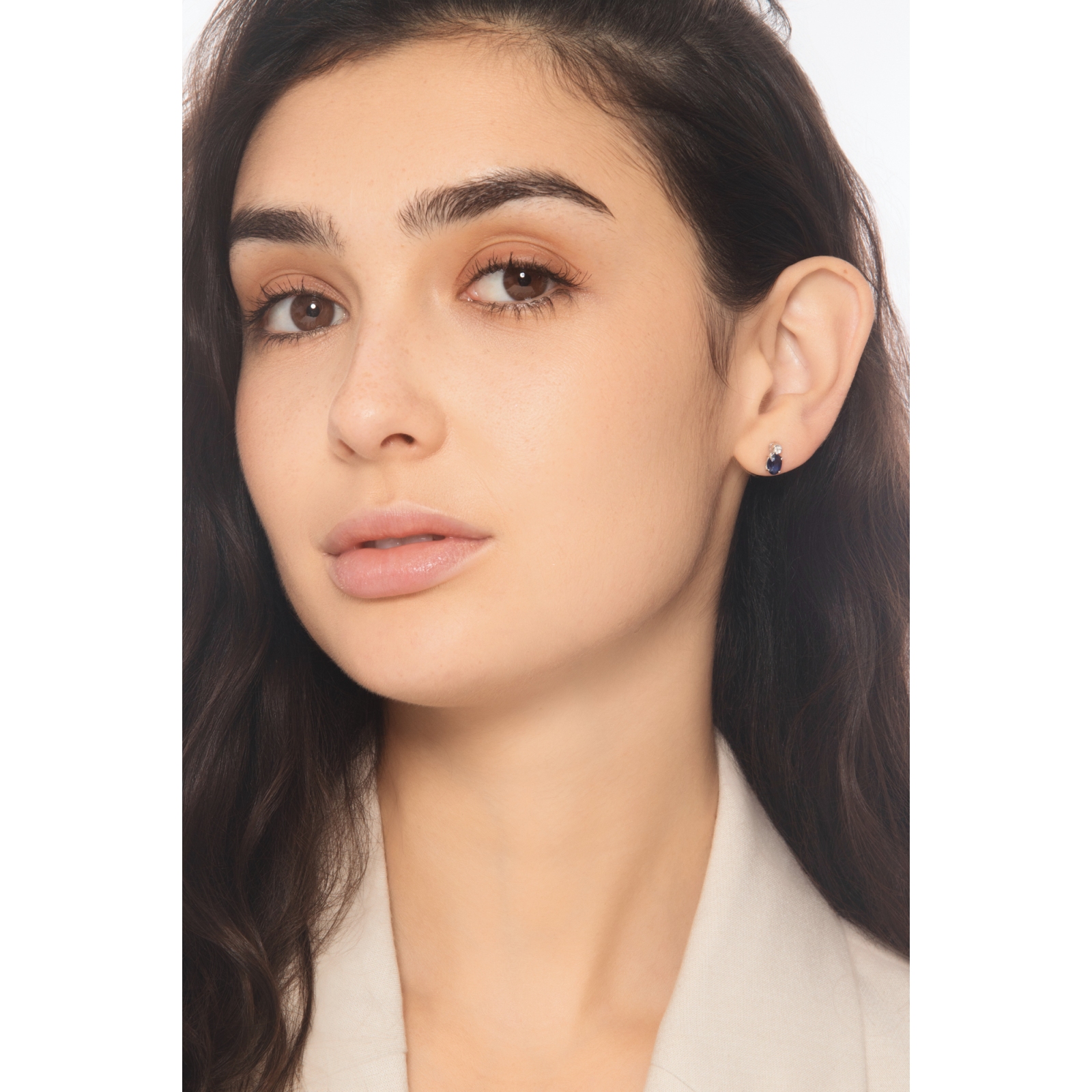 Orecchini a lobo in oro bianco 18k con zaffiri blu e diamanti