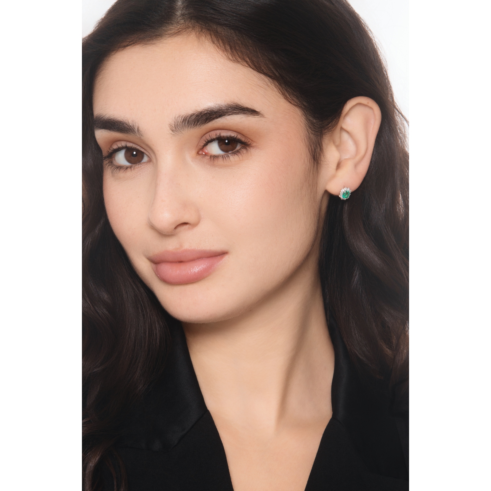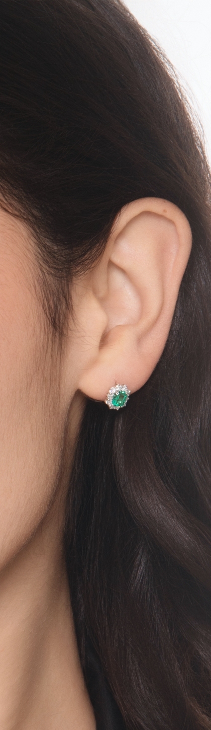 Orecchini a lobo in oro bianco 750 smeraldo e contorno in diamanti