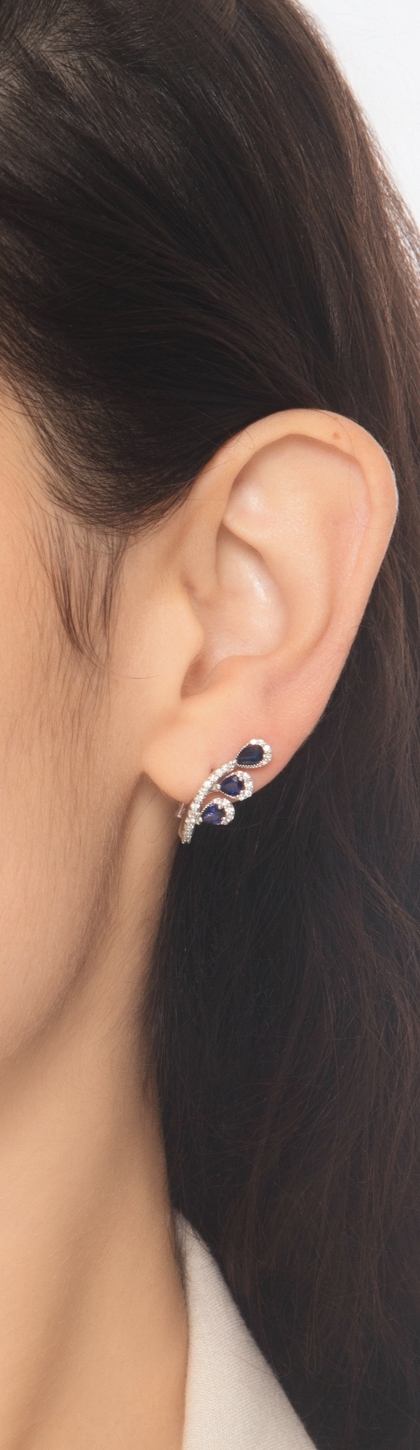 Orecchini a rametti in oro bianco 18k con diamanti e zaffiri blu