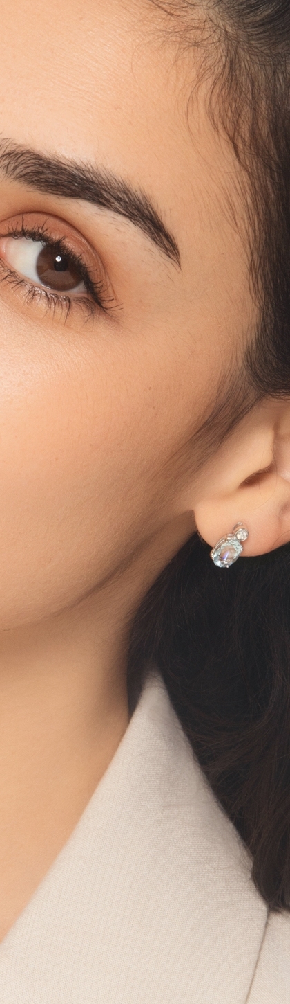 Orecchini con acquemarine ovali e diamanti in oro bianco 18k