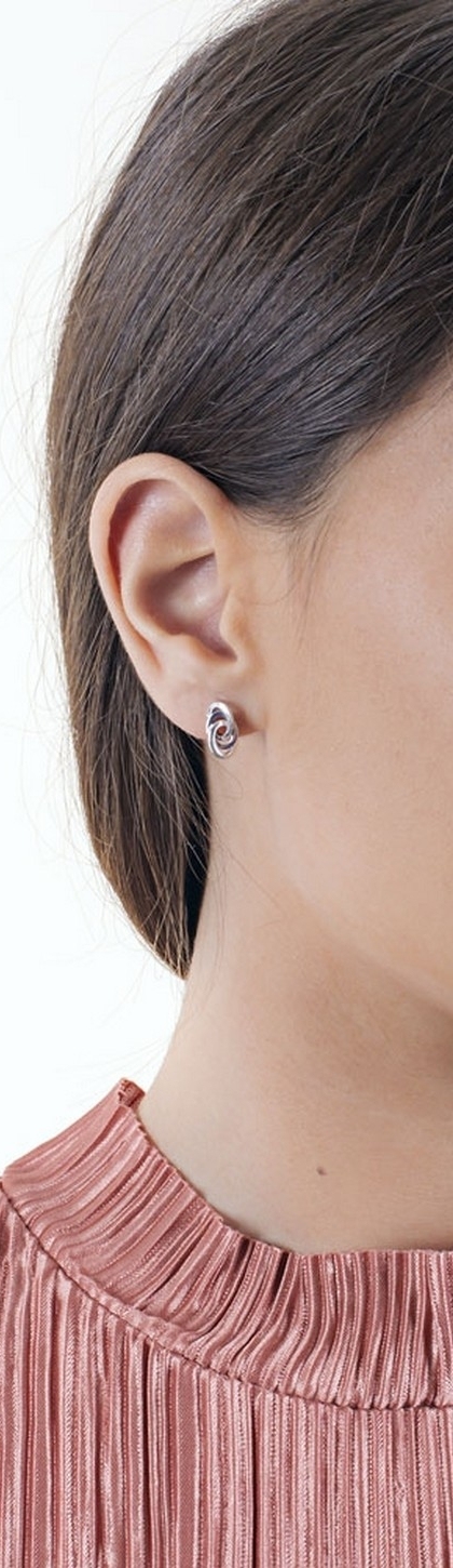 Orecchini con ovali intrecciati in oro bianco 18k.