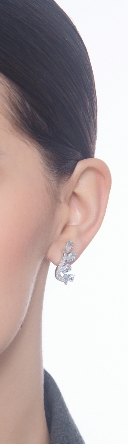 Orecchini design in oro bianco 18k con acquamarine taglio goccia e diamanti