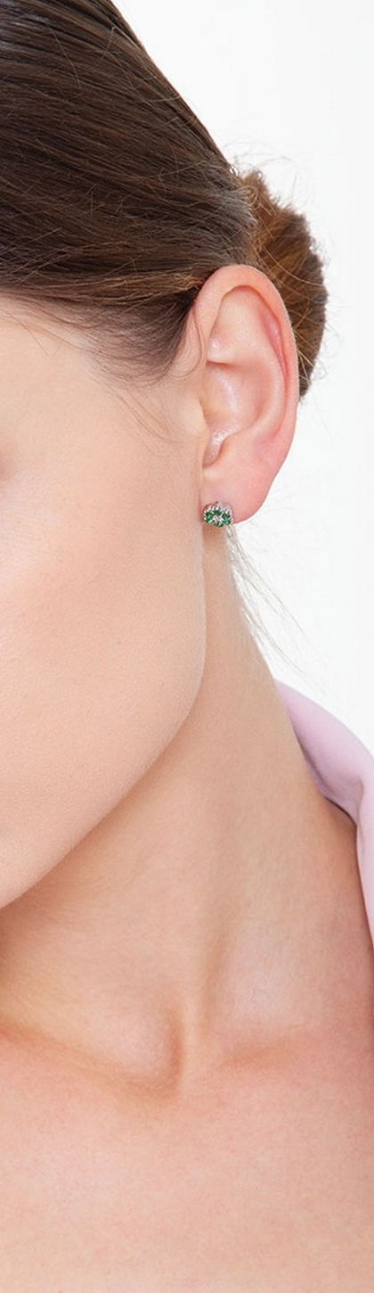 Orecchini fiore in oro bianco 18k con diamanti e smeraldi