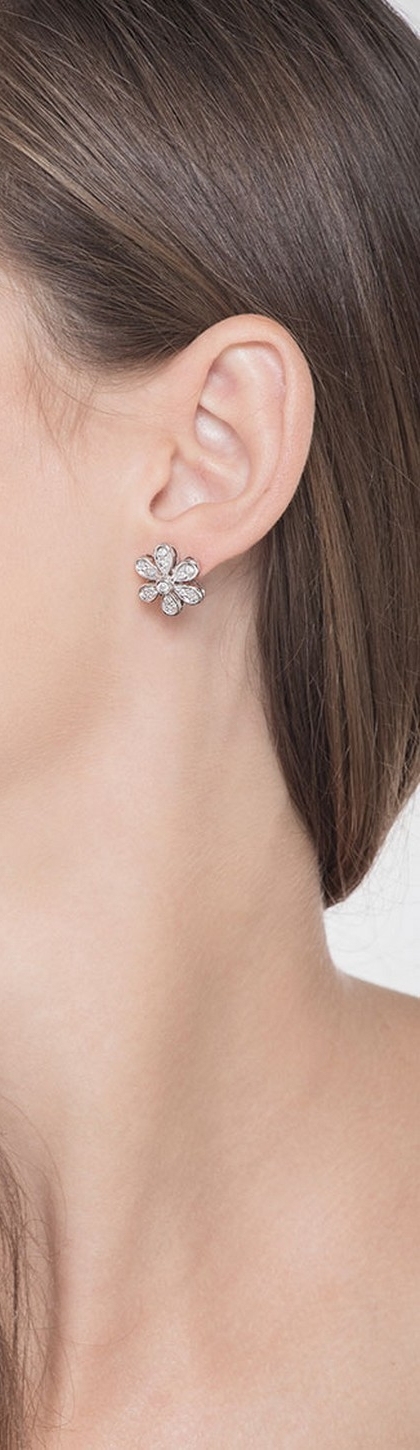 Orecchini in oro bianco 18k a fiore con 6 petali in diamanti