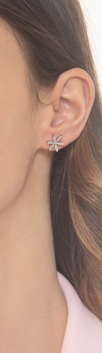 Orecchini in oro bianco 18k a fiore e diamanti