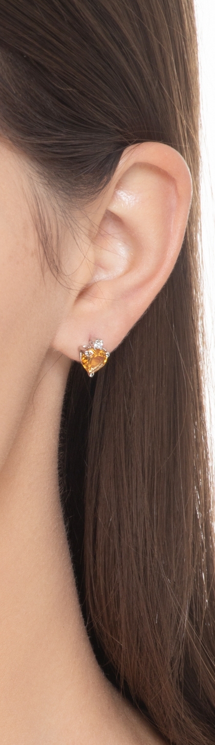 Orecchini in oro bianco 18k con citrino a cuore e diamanti