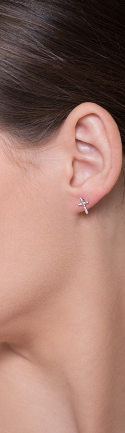 Orecchini in oro bianco 18k con croci in diamanti
