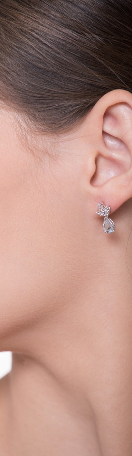 Orecchini in oro bianco 18k con diamanti e acquemarine a goccia