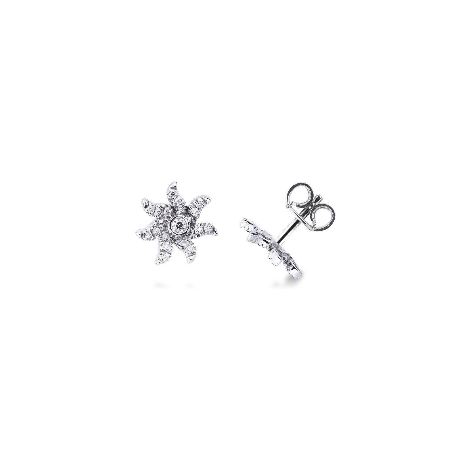 Orecchini in oro bianco 18k con raggi in diamanti