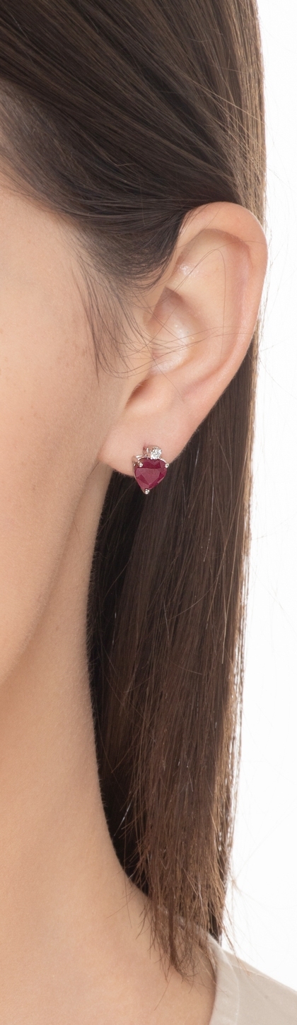 Orecchini  in oro bianco 18k con rubino a cuore e diamanti