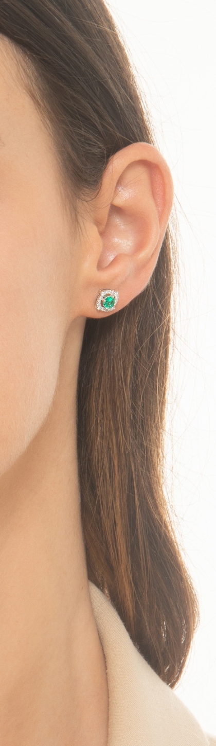 Orecchini in oro bianco 18k con smeraldo centrale e contorno in diamanti