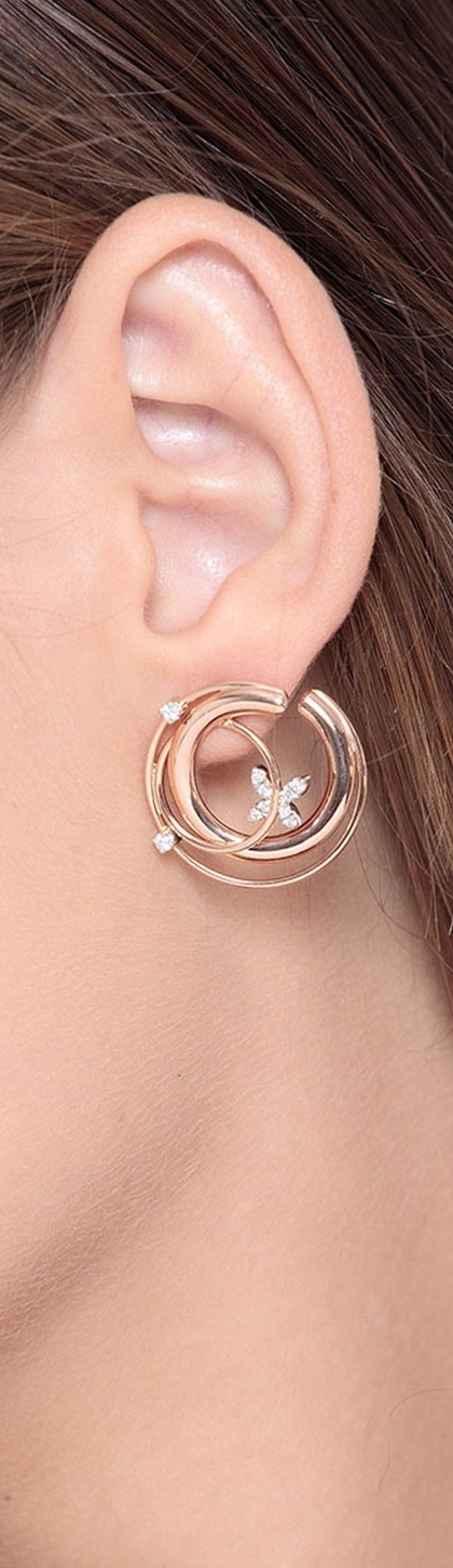 Orecchini a 3 file in oro rosa e bianco 18k con diamanti