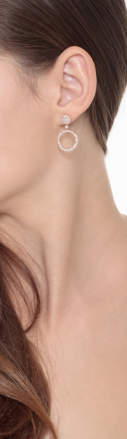 Orecchini a cerchio, di circa 16 mm, in oro rosa 18k con diamanti