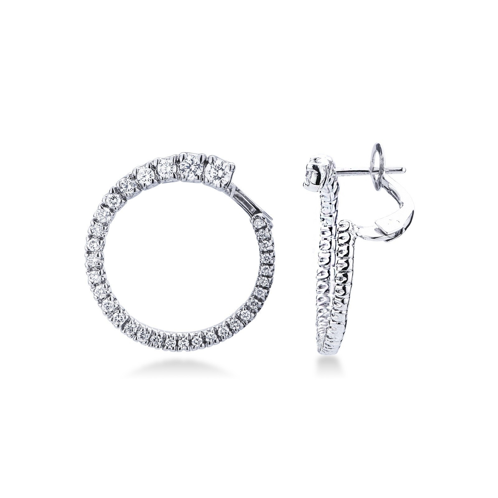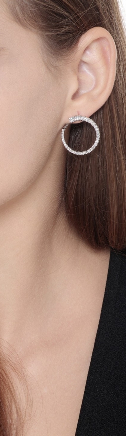 Orecchini a cerchio in oro bianco 18k con diamanti a scalare