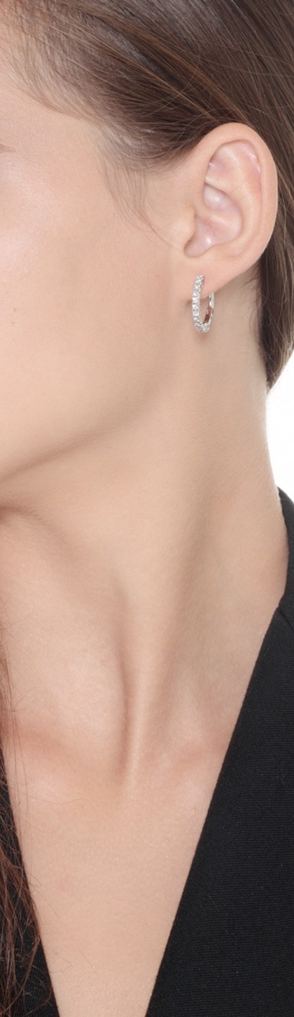 Orecchini a cerchio in oro bianco 18k con diamanti, ct. 0,90.