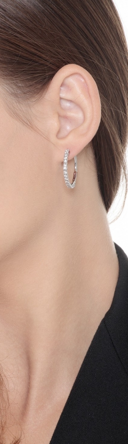 Orecchini a cerchio in oro bianco 18k con diamanti, ct. 1,24