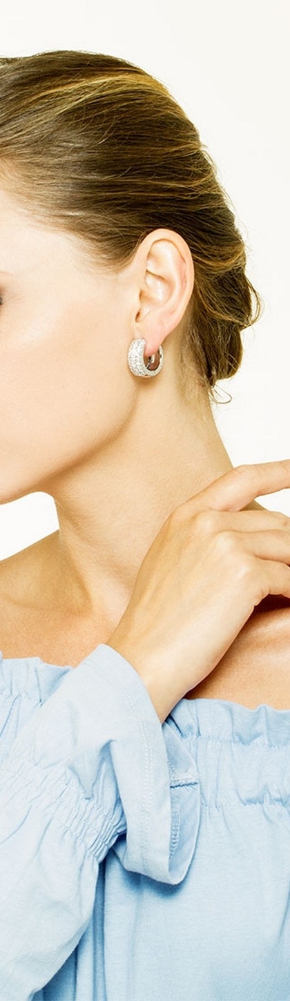 Orecchini a cerchio in oro bianco 18k con diamanti, ct. 2,60.