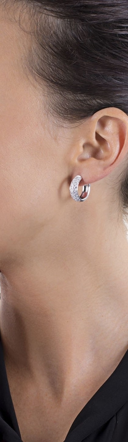 Orecchini a cerchio in oro bianco 18k con pavè di diamanti