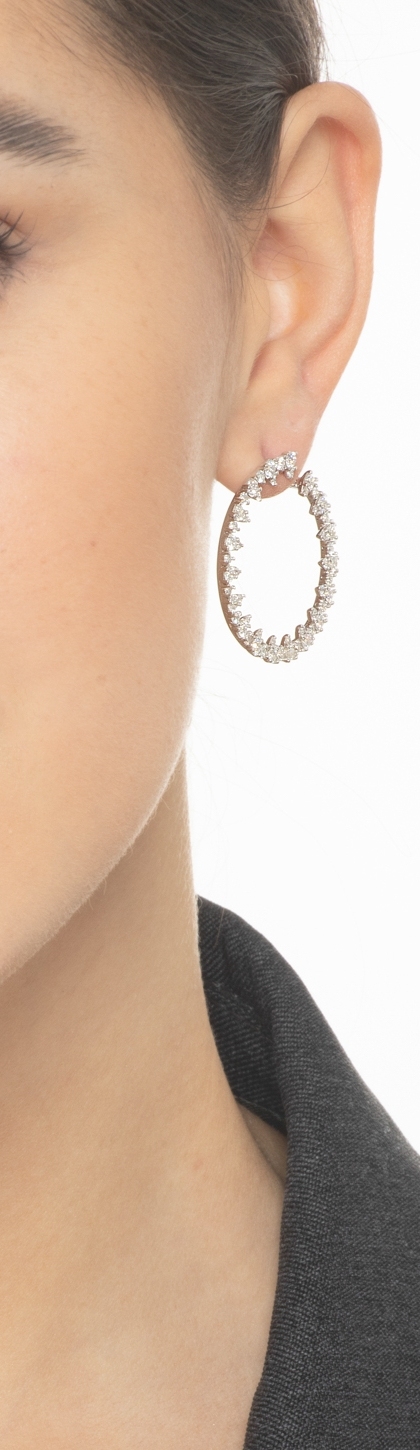 Orecchini a cerchio in oro bianco 18k contornati da diamanti.
