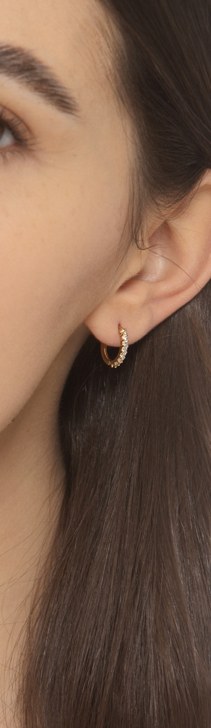 Orecchini a cerchio in oro giallo 18k con 8 zirconi ciascuno