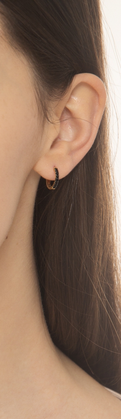 Orecchini a cerchio in oro giallo 18k con 8 zirconi neri ciascuno