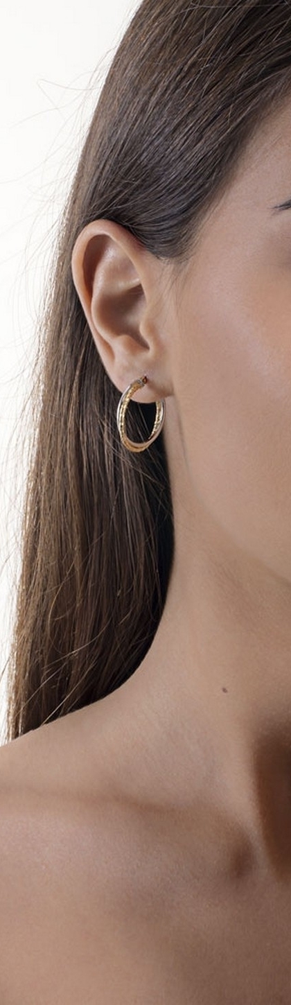 Orecchini a cerchio in oro giallo e bianco 18k, 2,5 cm.
