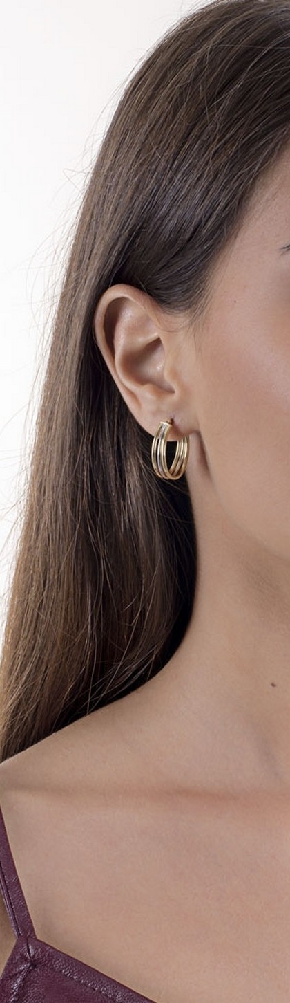 Orecchini a cerchio in oro giallo e bianco 18k a tre file.