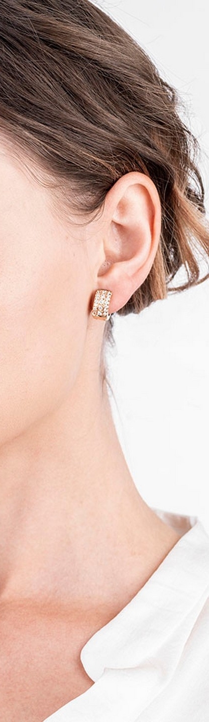 Orecchini a cerchio in oro rosa 18k con diamanti.