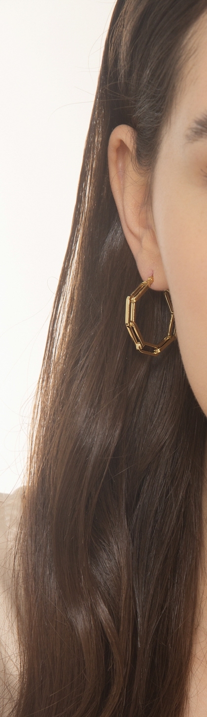Orecchini a cerchio paper clip in oro giallo 18k, diametro di circa 2.5 cm