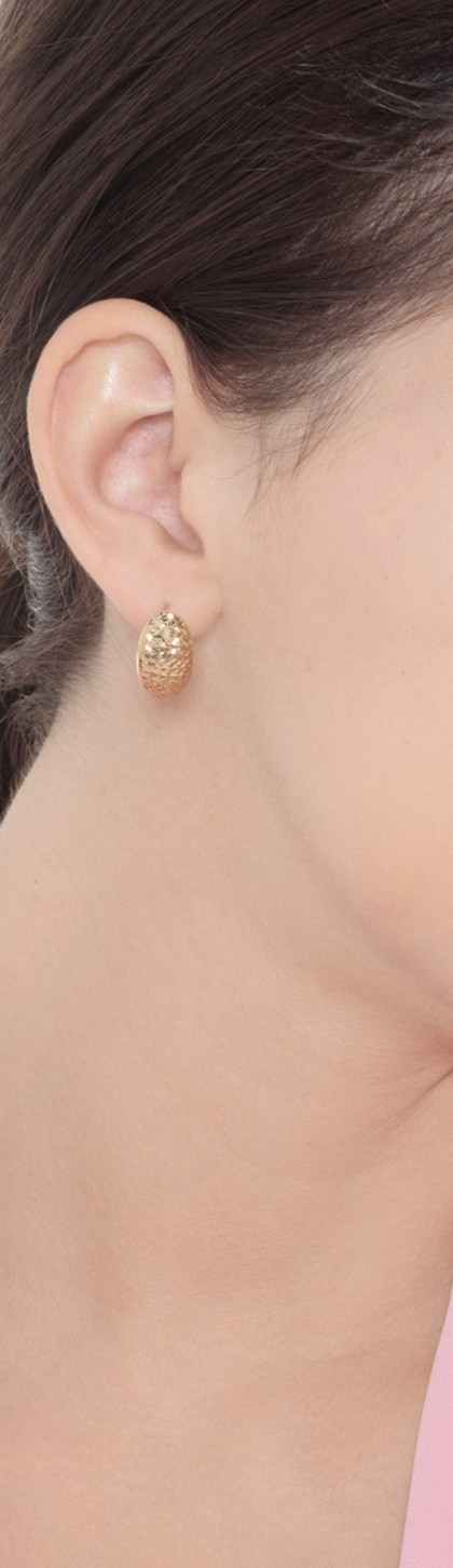 Orecchini a ovale bombato in oro giallo 18k diamantato.