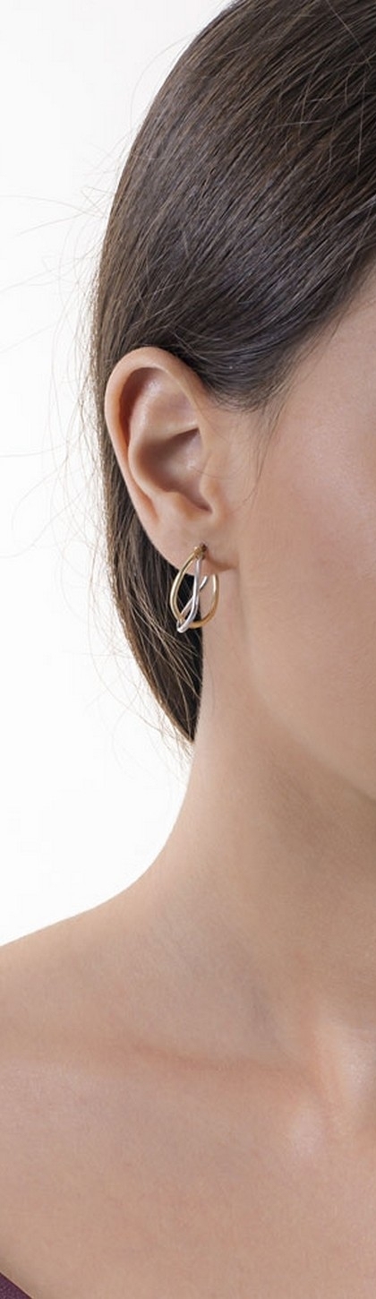 Orecchini a ovale intrecciato in oro bianco e giallo 18k.