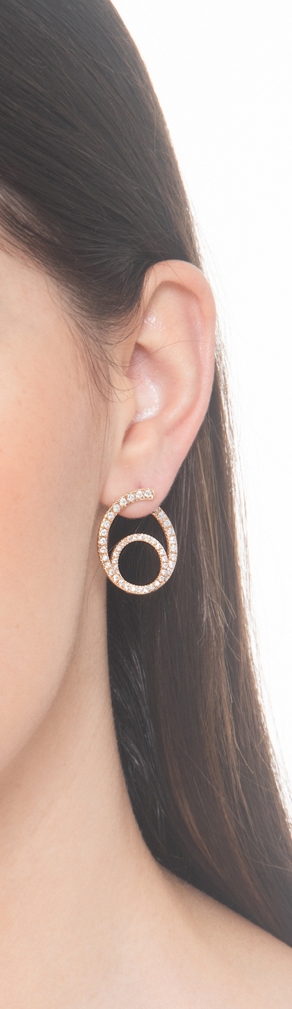 Orecchini doppio cerchio in oro rosa 18k con diamanti
