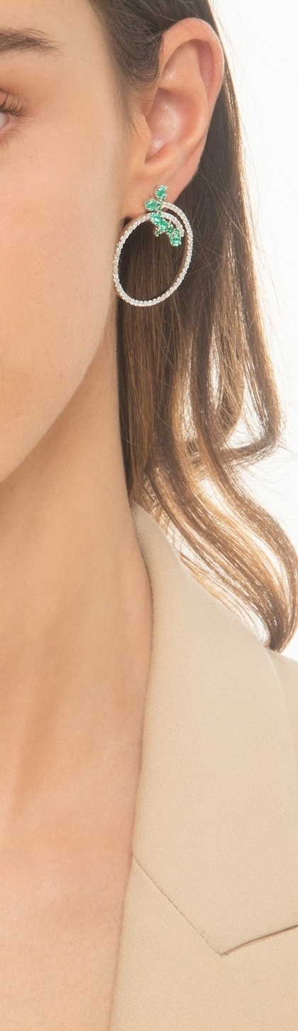 Hoop earrings in white gold 18k with emeralds and diamonds