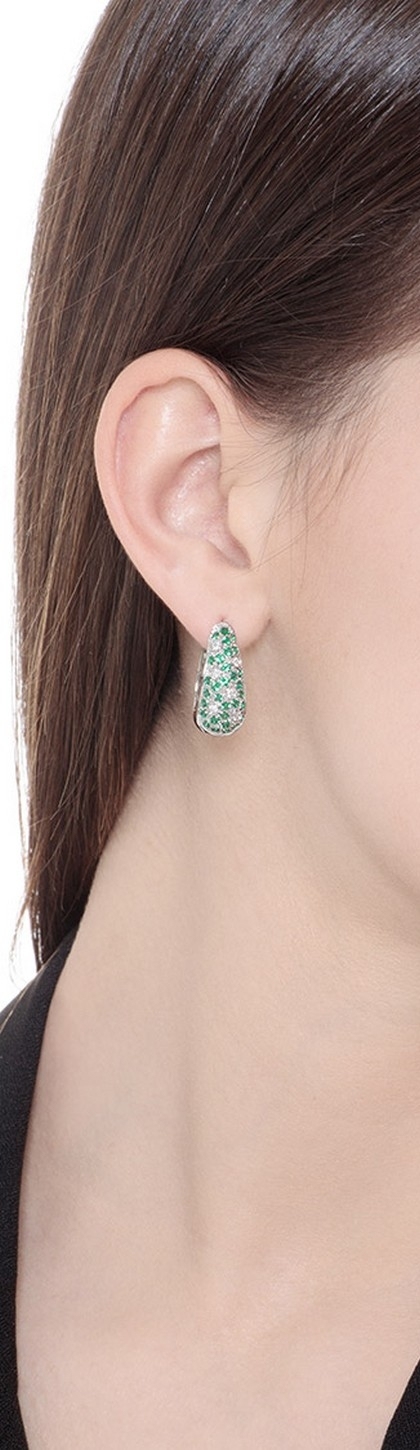 Orecchini in oro bianco 18k con diamanti e smeraldo.