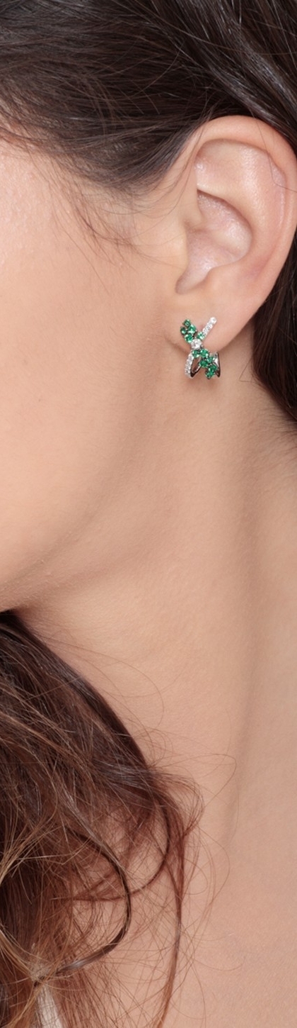Orecchini incrociati in oro bianco 18k con smeraldi e diamanti