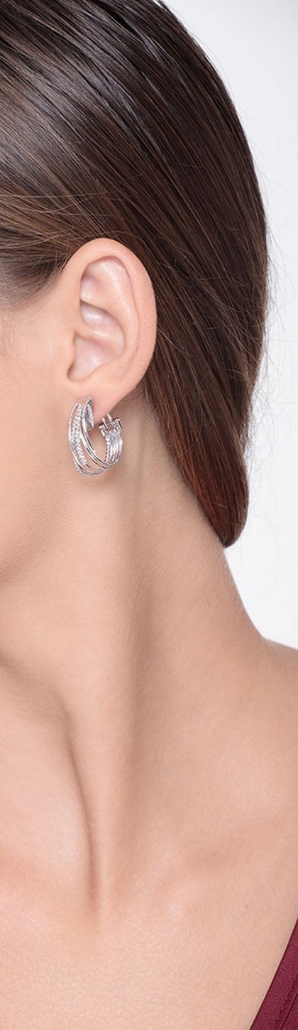 Orecchini intreccio in oro bianco 18k con diamanti