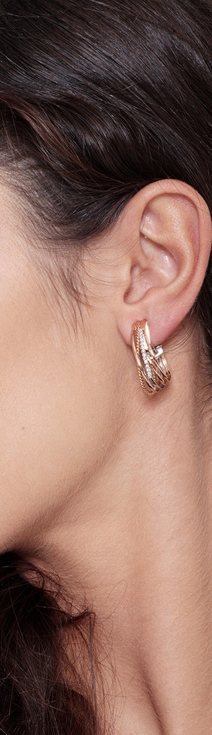 Orecchini intreccio in oro bianco e rosa 18k con diamanti