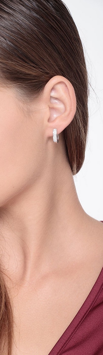 Orecchini ovali a sezione quadra in oro bianco 18k con diamanti