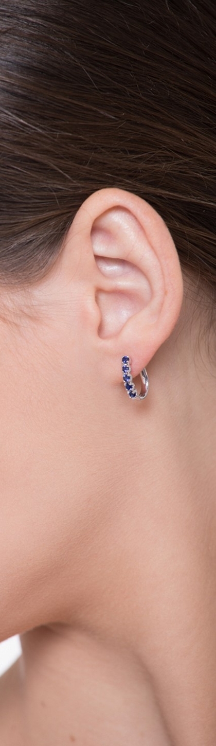 Orecchini Ovali in Oro Bianco 18k con Zaffiri Blu