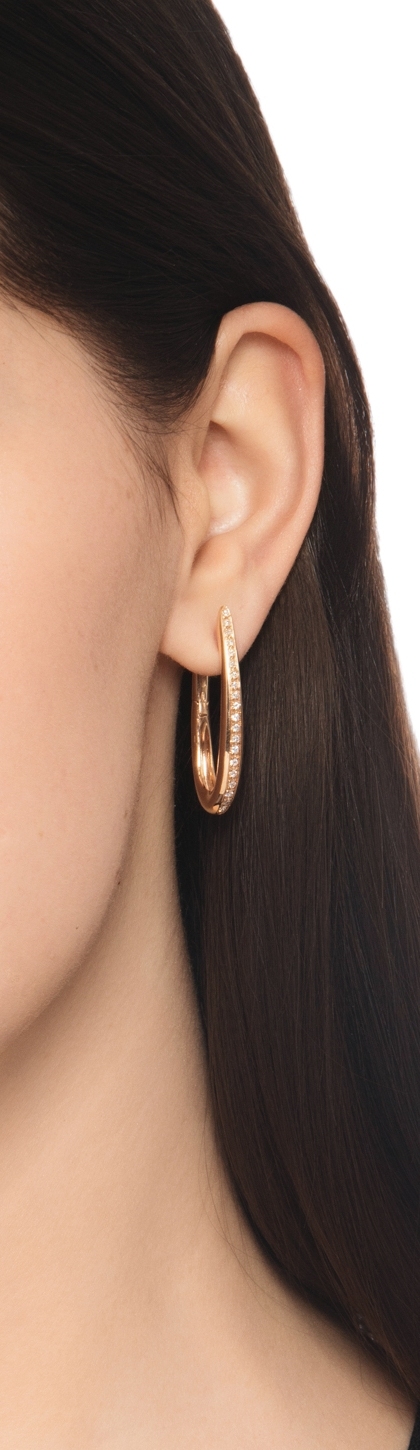 Orecchini ovali in oro rosa 18k con diamanti, cm 3.3