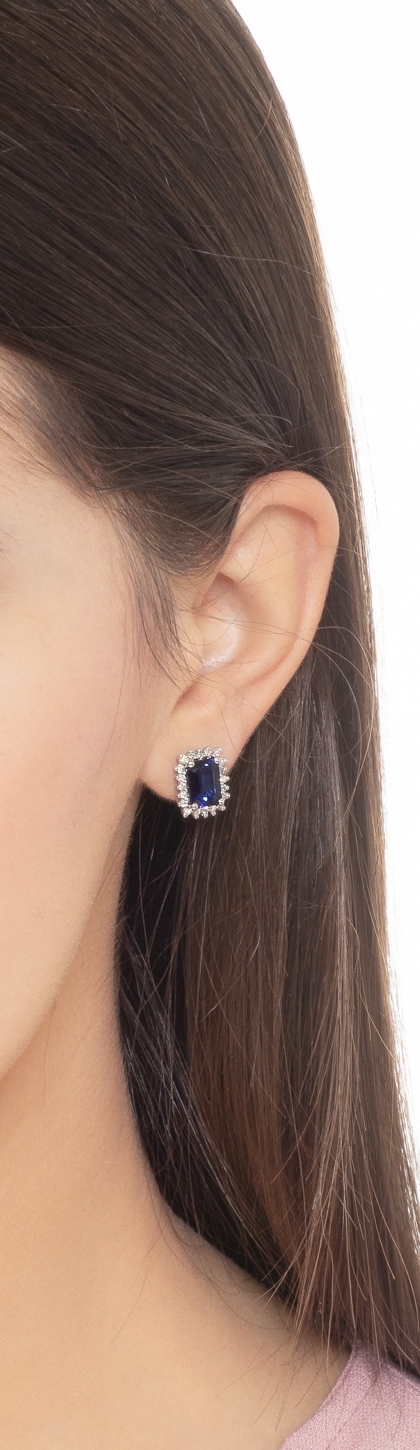Orecchini a lobo in oro bianco 18k con zaffiro blu e diamanti