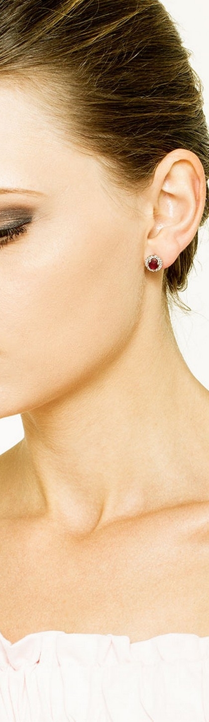 Orecchini Contorno In Oro Bianco 18k Con Rubini E Diamanti