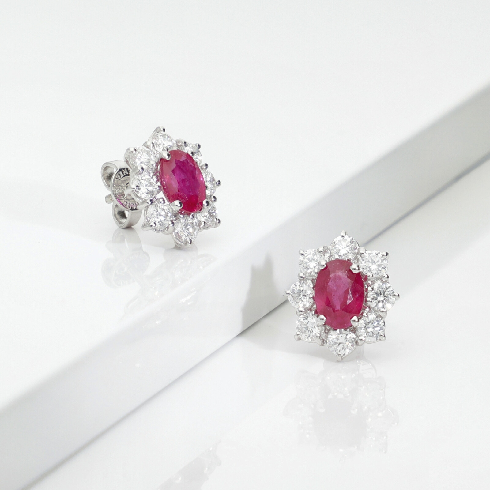 Orecchini contorno in oro bianco 750 con rubini e diamanti