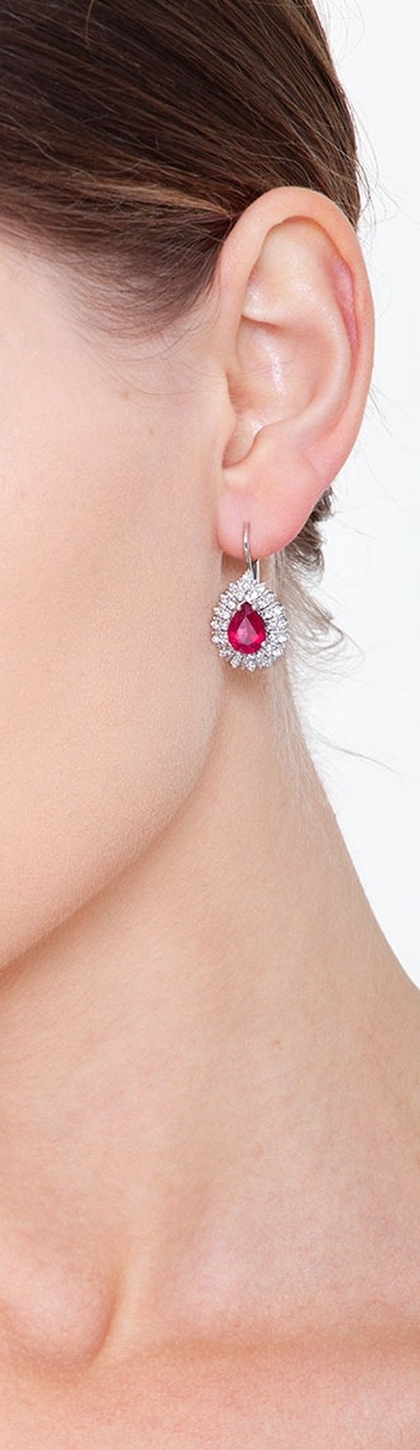 Orecchini in oro bianco 18k con diamanti e rubini.