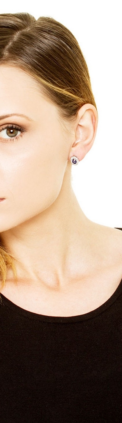 Orecchini in oro bianco 18k con zaffiro blu e diamanti a contorno